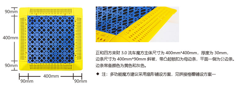 1. 分為3.4.5.厚度,解決不同厚度,統(tǒng)一紋路的問(wèn)題 2. 啞光平紋設(shè)計(jì),防滑,美觀,易清潔 3. 選用高級(jí)原料,加入其他輔料,顏色亮麗,無(wú)異味,無(wú)污染 4. 顏色為紅黃藍(lán)綠黑灰六色,滿足客戶用色需求,搭配屬于自己的風(fēng)格 5. 通扣鎖扣設(shè)計(jì),容易鋪設(shè)且容易拆卸打理 6. 加強(qiáng)支撐,不容易出現(xiàn)壓壞壓斷現(xiàn)象,滿足大多數(shù)車(chē)輛施工的要求 7. 使用年限長(zhǎng),五年超長(zhǎng)質(zhì)保,使用無(wú)后顧之憂 8. 十字支撐,保證承載最大化的同時(shí),且易排泥排水