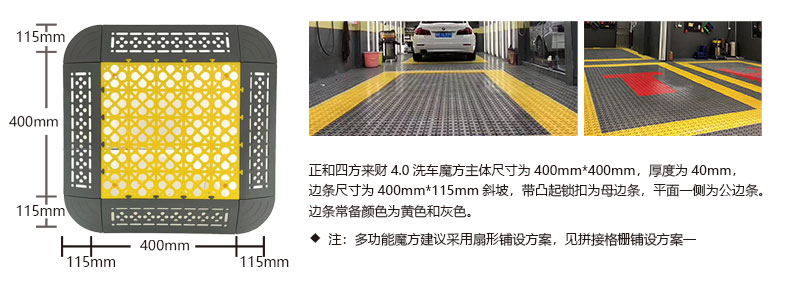 1. 分為3.4.5.厚度,解決不同厚度,統(tǒng)一紋路的問題 2. 啞光平紋設(shè)計,防滑,美觀,易清潔 3. 選用高級原料,加入其他輔料,顏色亮麗,無異味,無污染 4. 顏色為紅黃藍(lán)綠黑灰六色,滿足客戶用色需求,搭配屬于自己的風(fēng)格 5. 通扣鎖扣設(shè)計,容易鋪設(shè)且容易拆卸打理 6. 加強支撐,不容易出現(xiàn)壓壞壓斷現(xiàn)象,滿足大多數(shù)車輛施工的要求 7. 使用年限長,五年超長質(zhì)保,使用無后顧之憂 8. 十字支撐,保證承載最大化的同時,且易排泥排水