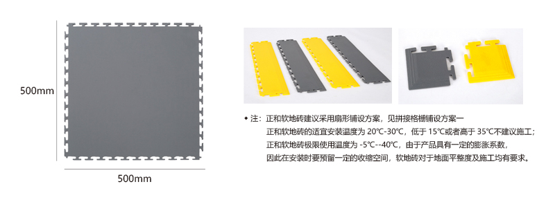 軟質(zhì)絕緣地板能將每個(gè)獨(dú)立的地板快速拼裝成整體地面,專利型鎖扣結(jié)構(gòu)連接能力更強(qiáng),可承受叉車的來回碾壓。施工過程中無需膠黏劑等材質(zhì),具有施工簡(jiǎn)單快速、色彩絢麗、美觀大方、可移動(dòng)性強(qiáng)、可重復(fù)使用等特點(diǎn)。